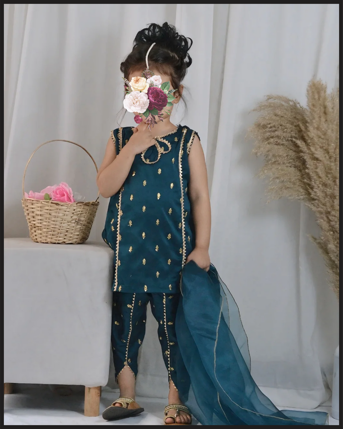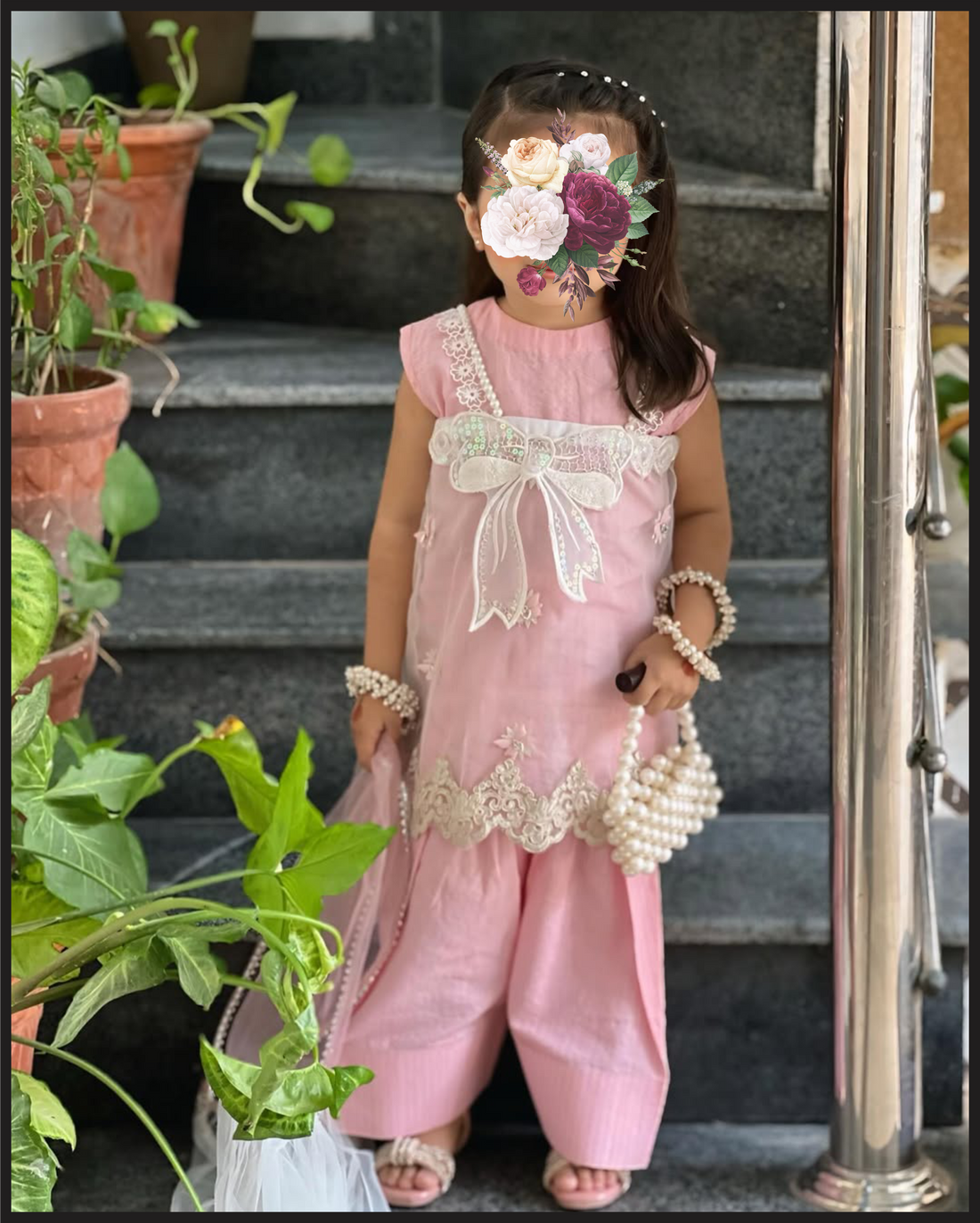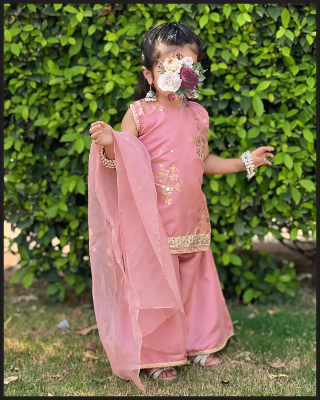 FABRIC DETAILS: This elegant gharara-style baby dress combines traditional design with delicate craftsmanship. Made from...