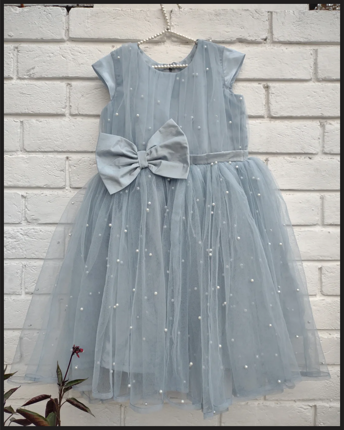 FABRIC DETAILS: This baby dress features a delicate net frock adorned with pearl embellishments, combining...
