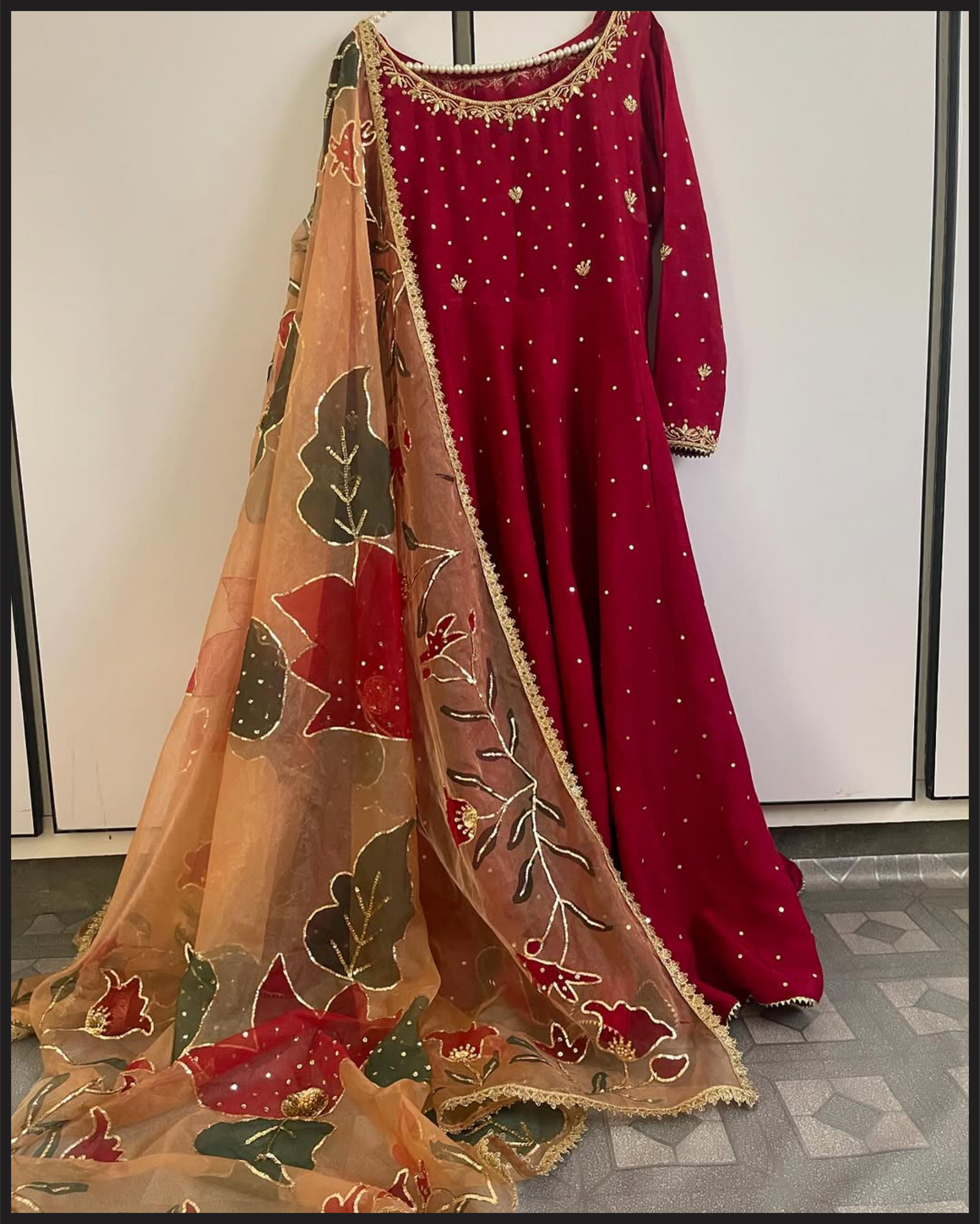 Handmade on SILK Expertly crafted on luxurious pure silk, BLUSH_MAROON is a stunning dress that exudes elegance and charm. Handmade with intricate details, it offers a truly unique and beautiful look for any occasion. Elevate your style and stand out with this exquisite piece.