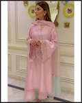 Introducing ICE PINK, a handmade CHERMOUSE silk dress with organza dupatta that is sure to make a statement. High-quality and stylish, this dress will be sure to turn heads and add a touch of elegance to any outfit. Perfect for a variety of occasions, it is an investment in timeless style.