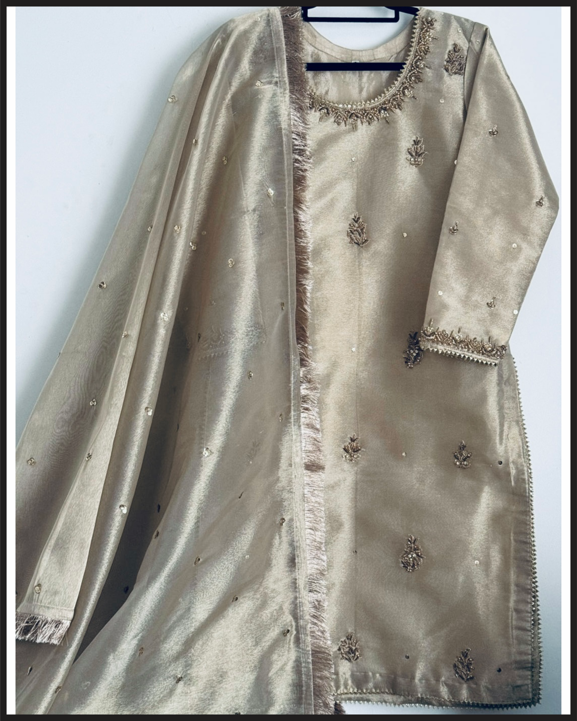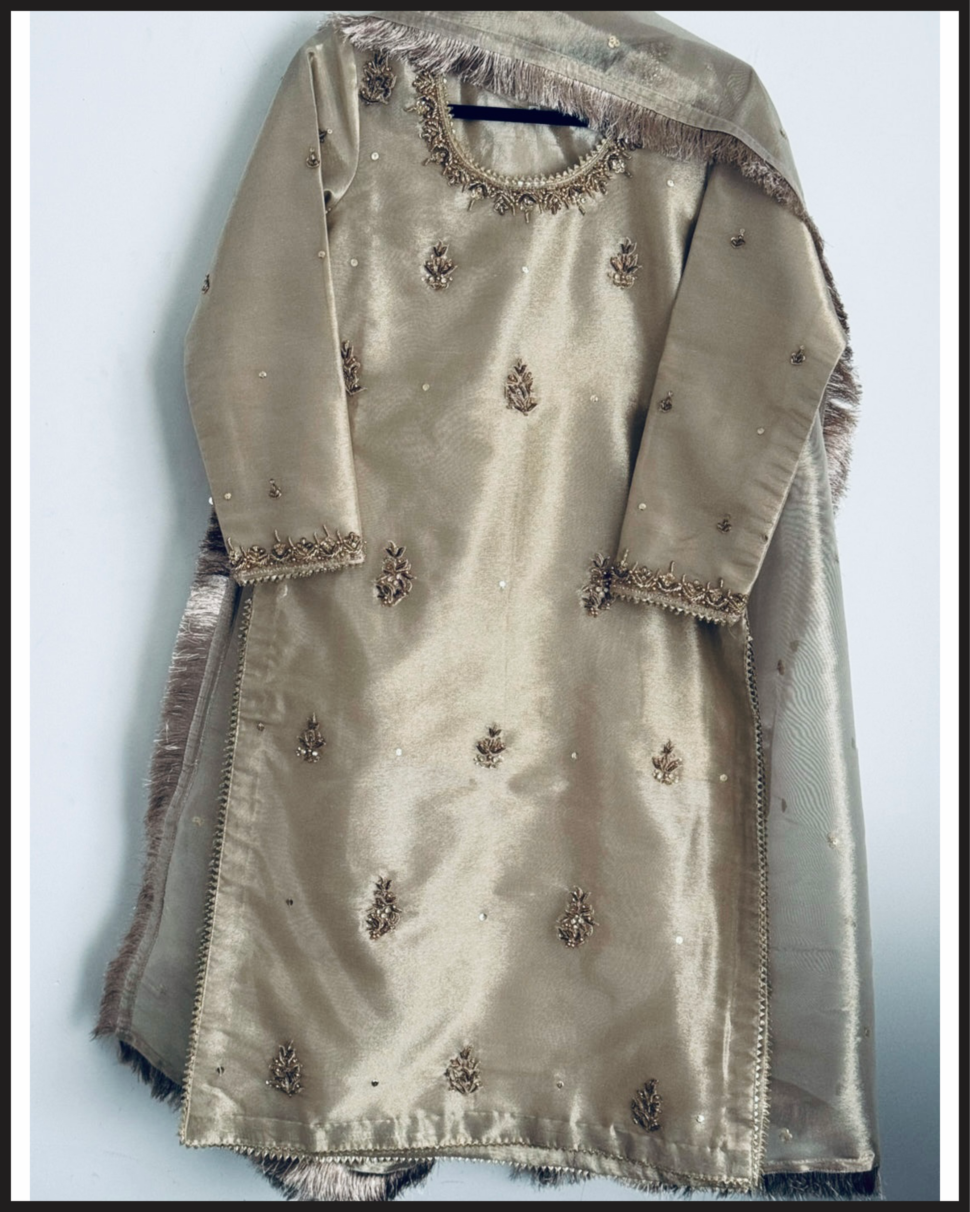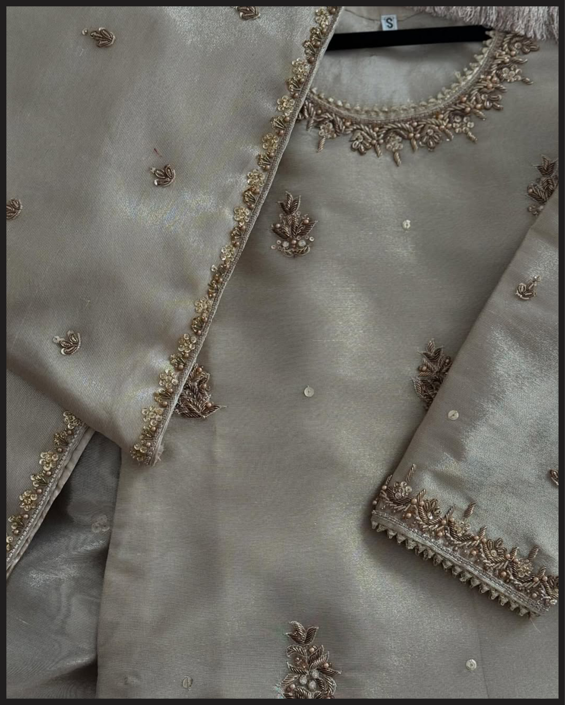 Introducing our exclusive Eid collection, expertly handcrafted with delicate zari details. Elevate your style with this one-of-a-kind, limited edition collection and celebrate the holiday in timeless elegance. Limited quantities available.