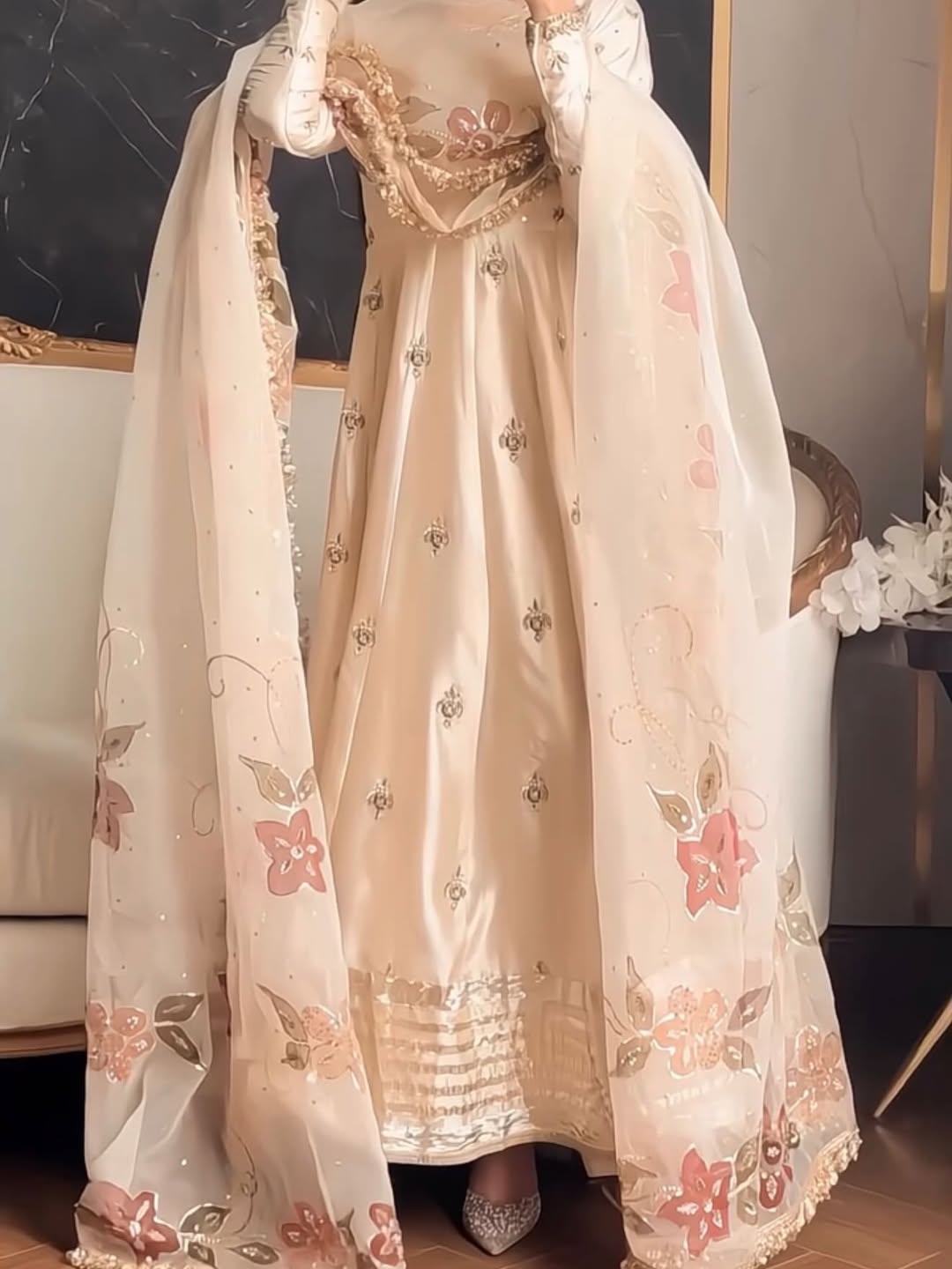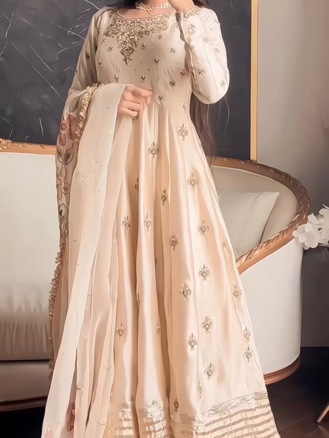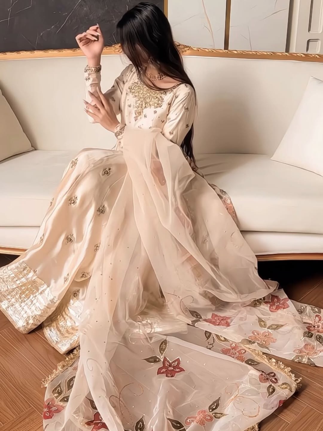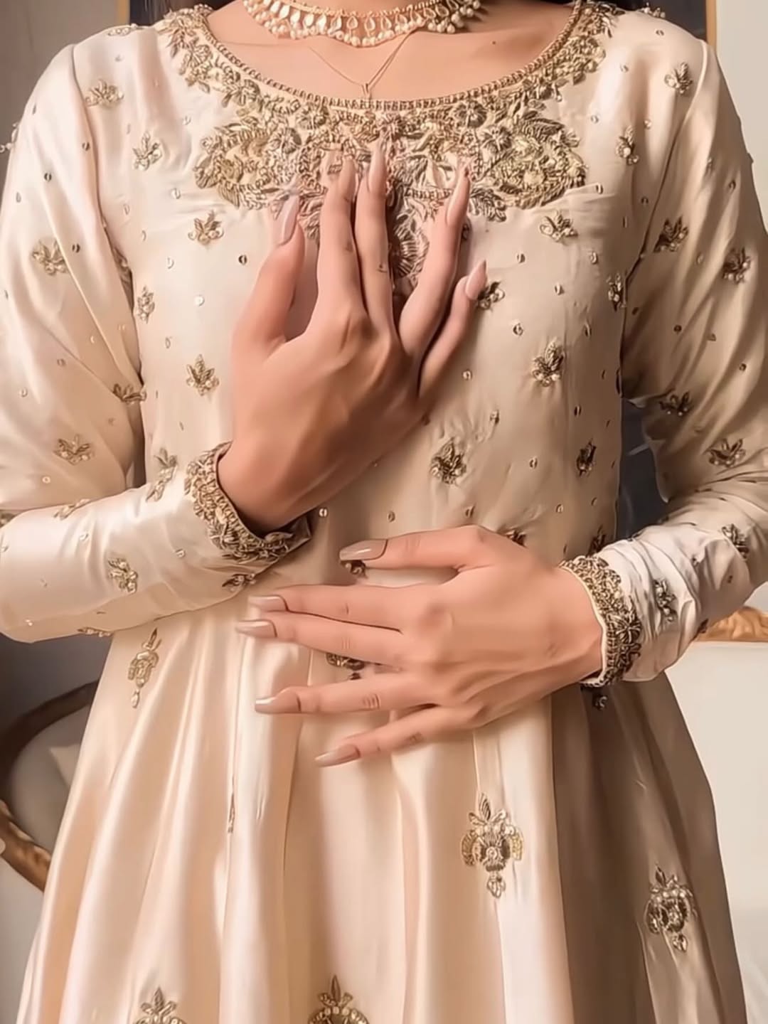Introducing the NAAZ Dress — a stunning piece crafted from premium fabric with intricate pure handbeaded work. This versatile dress is designed for every occasion, whether you're attending a formal event, celebration, or special gathering. The meticulous beadwork adds elegance and sophistication to the garment, making it a timeless addition to your wardrobe. Perfect for those who appreciate quality craftsmanship and refined style.