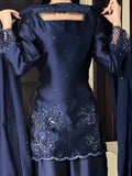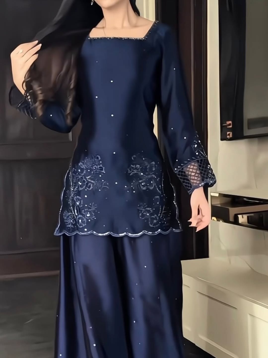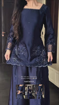 Shahee Blue Dress features exquisite beaded handmade adda work meticulously crafted on pure silk. This elegant formal wear is perfect for all occasions, from intimate gatherings to grand celebrations. Each piece showcases traditional artisanal embellishment, combining timeless craftsmanship with luxurious fabric. The intricate beadwork adds sophistication and sparkle, making it an ideal choice for parties and formal events. Wear with confidence and grace in this stunning handcrafted creation.